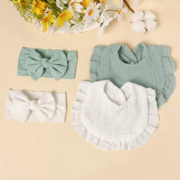 6-Piece Double-Layer Muslin Baby Bib & Burp Cloth Set