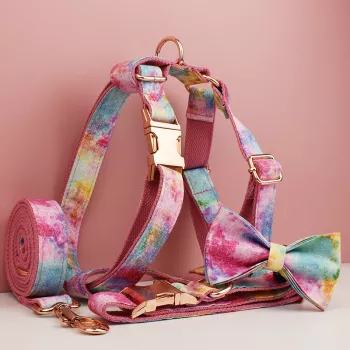 Cotton Dog Collar, Leash & Harness Set – Purple Designer Pet Accessories