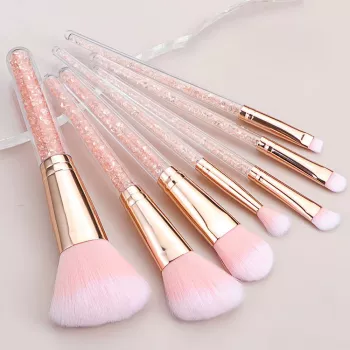 7pcs Pink Crystal Handle Makeup Brush Set - Professional Soft Synthetic Fiber