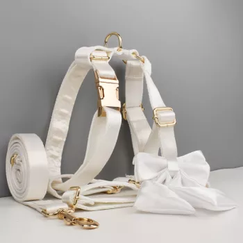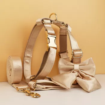 Polyester Dog Collar, Leash, Harness & Bow Set