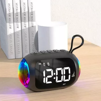 Mini Clock Bluetooth Speaker with Colorful Light, Dual Alarm & FM Radio