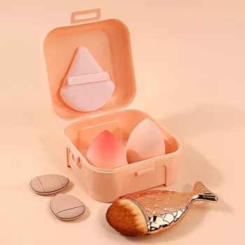 Boxed Makeup Sponge Set with Powder Puff & Fishtail Foundation Brush