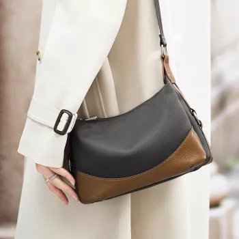 Oxford Cloth & Cow Leather Shoulder Crossbody Bag - Handmade Purses