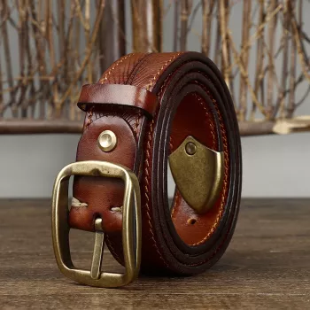 3.8CM Stainless Steel Pin Buckle Genuine Leather Belt for Men – Vintage Cowboy Strap