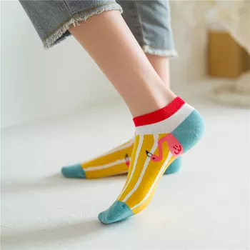 Flamingo Patterned Ankle Socks for Women - Colorful & Fun Harajuku Striped Socks