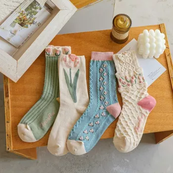 Women’s Cartoon Floral Mid Tube Socks - Breathable & Soft Casual Short Socks