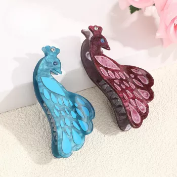 Colorful Peacock Rhinestone Acetate Hair Claw Clip for Women
