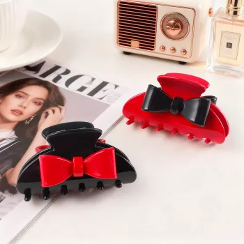 Red and Black Bow Acrylic Hair Claw Clip for Women and Girls