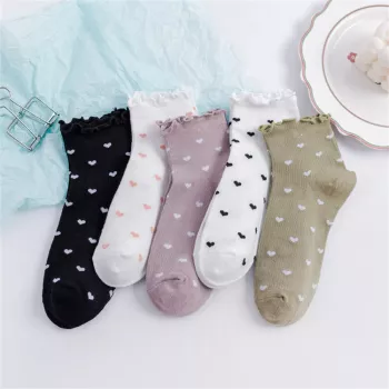 Sweet Candy Color Love Heart Crimped Ankle Socks for Women and Girls - Cute Kawaii Designer Art Socks