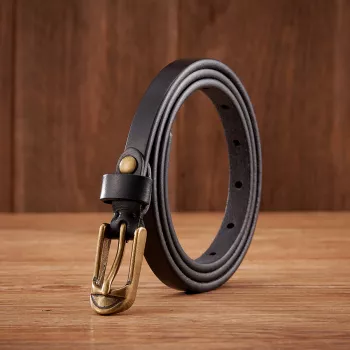 1.5cm Width Genuine Leather Belt with Copper Pin Buckle - Thin Waistband for Jeans & Dresses