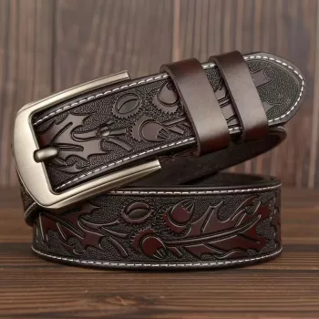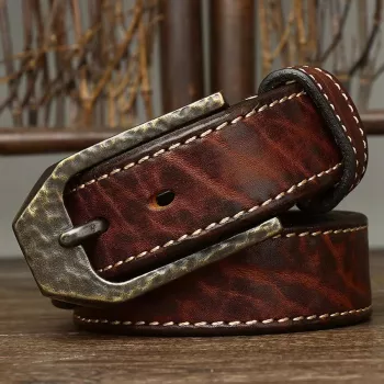 Genuine Leather Western Cowboy Belt with Retro Pin Buckle