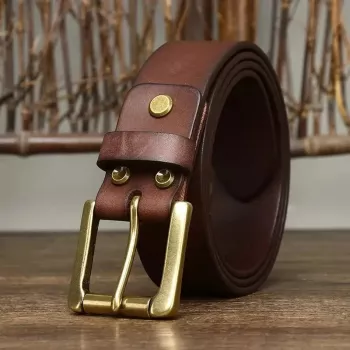 3.8cm Genuine Leather Belt for Men with Copper Buckle - Stylish Casual Cowboy Waistband
