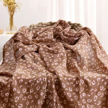 Floral Cotton Towel Blanket - Soft, Four-Layer Jacquard Bedspread