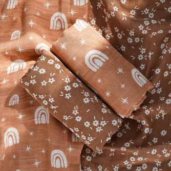 2-Pack Bamboo Cotton Muslin Baby Wrap Blankets 47x43 in