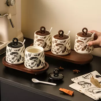 Vintage Ceramic Flower & Bird Kitchen Seasoning Jar Set - Salt & Sugar Storage