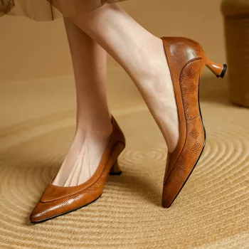 Elegant Pointed Toe Leather Kitten Heel Pumps for Women