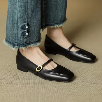 SpringWomen’s Genuine Leather Square Toe Low Heel Mary Jane Pumps