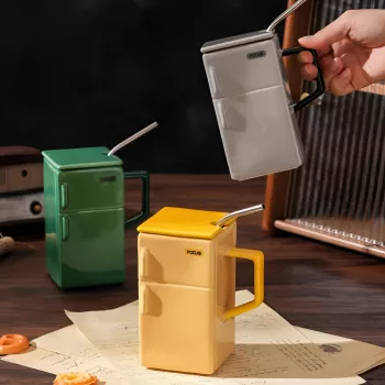 Creative Retro Refrigerator Ceramic Mug with Lid & Straw (600ml)