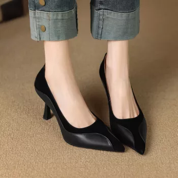 Spring Women’s Pointed Toe Leather Pumps – Thin Heel Slip-On Shoes