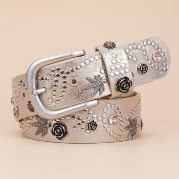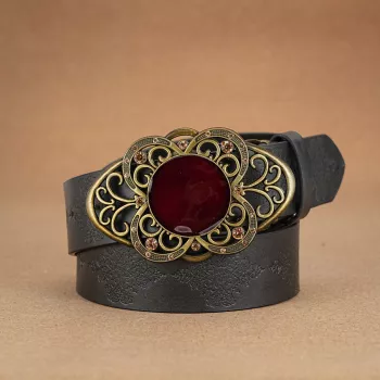 Women’s Genuine Leather Floral Buckle Belt – 1.4" Wide Waistband