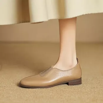 Spring Women Loafers - Round Toe Chunky Heel Genuine Leather Pumps