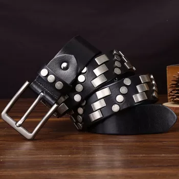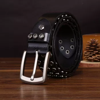 Men’s Genuine Leather Pin Buckle Belt – 1.5” Retro Cowhide Style