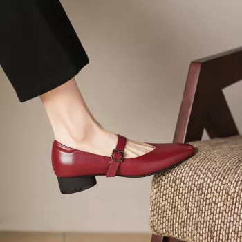 New Autumn/Spring Women’s Genuine Leather Chunky Heel Pumps with Belt Buckle