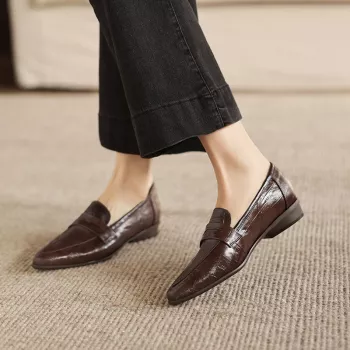 Women’s Genuine Leather Loafers with Pointed Toe and Chunky Heel - Casual Slip-On Shoes