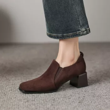 Women’s Spring/Autumn Loafers – Kid Suede Leather Slip-on Shoes with Chunky Heel