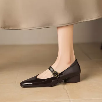 Autumn/Spring Women’s Square Toe Chunky Heel Pumps with Belt Buckle