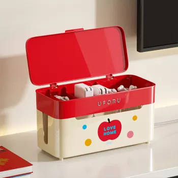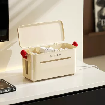 360° Rolling Cable Organizer Box with Divided Storage Compartments