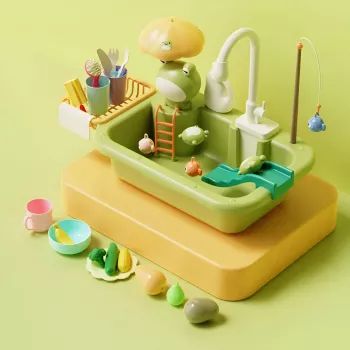 Kids Electric Kitchen Sink Playset with Running Water & Fishing Toys