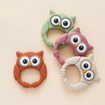 Owl Silicone Baby Teether Rattle – Food-Grade Soothing Toy for Infants