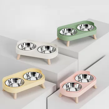 Double Bowl Stainless Steel Pet Feeder with Splash-Proof Stand