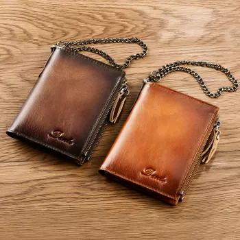 Genuine Leather Women’s Zipper Wallet with Chain – Small Coin Purse